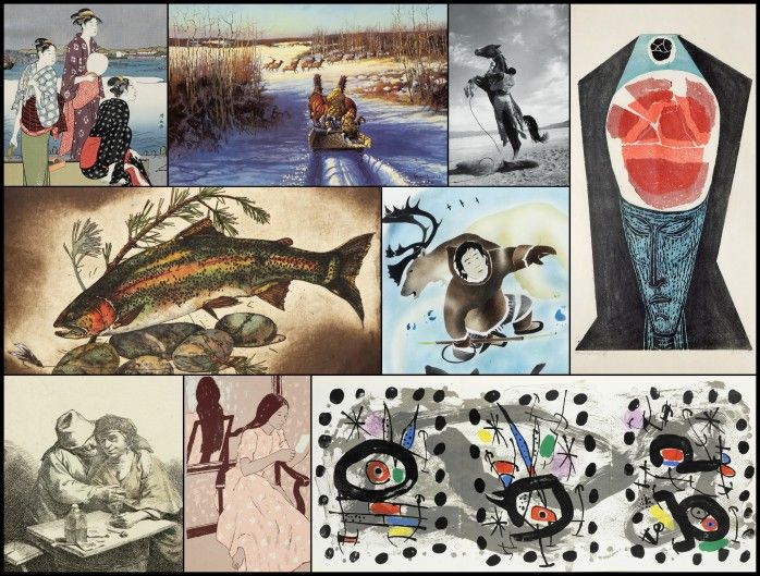 Works by Wilf Perreault, Jack Cowin, Ann Leger Anderson, Michael Lonechild, Beatrice Harding, Frank Kaszas, George Weber, AJ Casson, Stanley Lewis, John Harold Thomas Snow, Donald Harvey, Pudlo Pudlat, Agnes Nanogak, Andrew Qappik, Noboru Sawai, Eve Arnold, Andre Kertesz, Henry Moore, Salvador Dali, Joan Miro and many more.