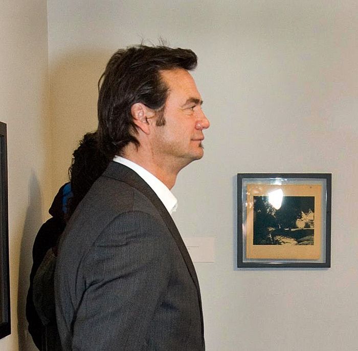 Photo by Kris Brandhagen: Curtis Collins at opening of Articulate Ink exhibition at the Sherwood Village Branch gallery, January 2012.
