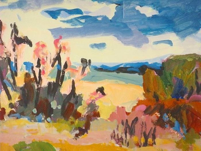 Wynona Mulcaster was born in 1915 in Prince Albert, Saskatchewan, and started devoting herself to artmaking when she was just 17 years old. She studied art with Ernest Lindner from 1935 to 1945, earning her Bachelor of Arts from the University of Saskatchewan in Saskatoon in 1943. Mulcaster then went on to study at the Banff School of Fine Arts (1946), and at the School of Art and Design in Montreal under Arthur Lismer (1947). Mulcaster also attended many workshops at Emma Lake between 1937 and 1993, studying with Joseph Plaskett, Will Barnett, and Kenneth Noland, among many others.